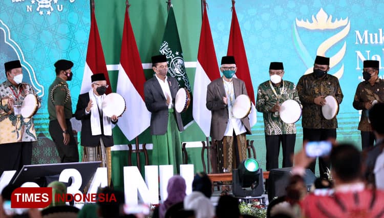 TIMES Fak Fak/Presiden Jokowi (Joko Widodo) membuka secara resmi Muktamar Ke-34 Nahdlatul Ulama di Pondok Pesantren Darussa’adah, Gunung Sugih, Lampung Tengah, Rabu (22/12/2021). (FOTO: Moh Ramli/TIMES Indonesia)
