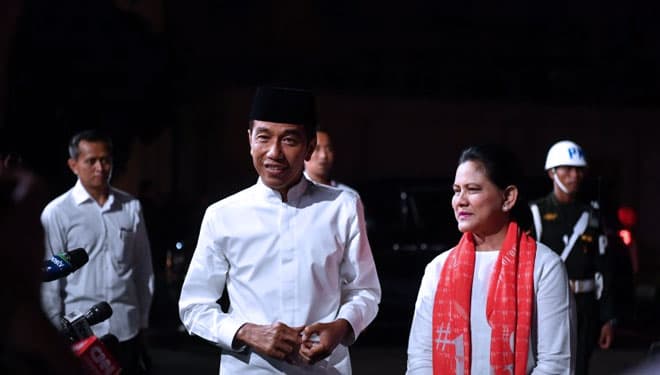 TIMES Fak Fak/Capres nomor urut 01 Joko Widodo bersama istri Iriana Joko Widodo tiba di lokasi untuk mengikuti debat Pilpres 2019 putaran kelima, di Hotel Sultan, Jakarta, Sabtu (13/4/2019). (FOTO: Rivan Awal Lingga/Antarafoto)