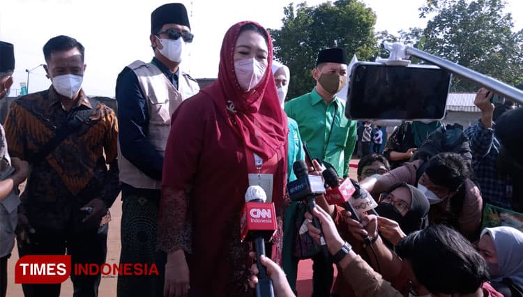 TIMES Fak Fak/Putri Abdurrahman Wahid (Gus Dur) Yeny Wahid saat diwawancarai oleh awak media. (FOTO: Moh Ramli/TIMES Indonesia)
