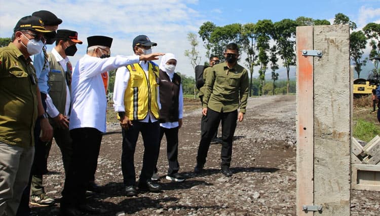 TIMES Fak Fak/Sekjen PUPR RI Mohammad Zainal Fatah dampingi Wapres RI KH Ma'ruf Amin meninjau lokasi pembangunan Hunian Sementara (Huntara) bagi korban terdampak erupsi Gunung Semeru di Desa Sumbermujur, Kecamatan Candipuro, Kabupaten Lumajang.